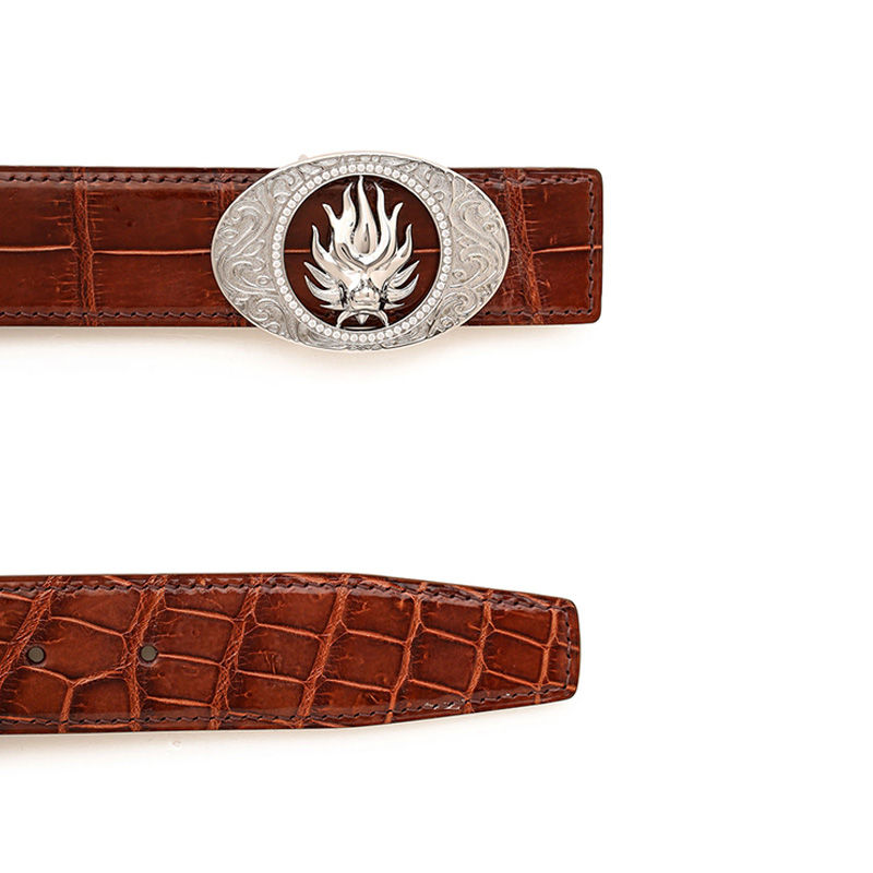 Men's Crocodile Leather Belt (No Buckle) (Brown)